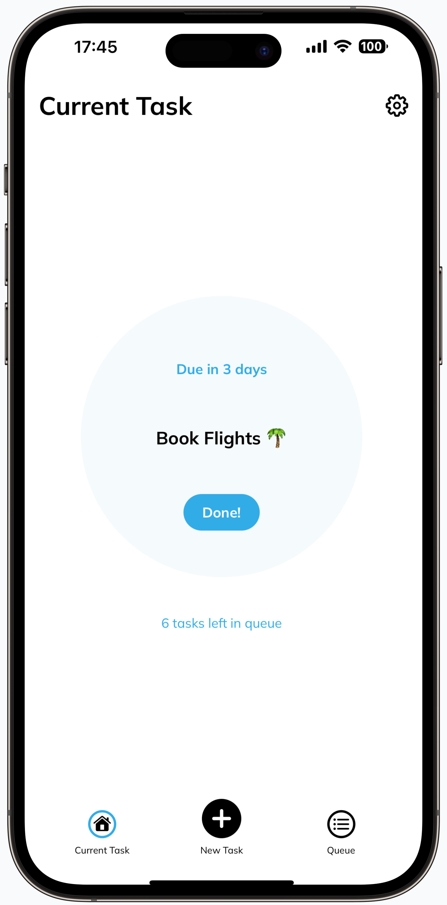 Let the app decide what to do next. When the Random Mode is on, the order of your task queue will be randomized.